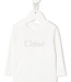 logo-print long-sleeve T-shirt from CHLOÉ KIDS featuring cloud white, organic cotton, logo print to the front, round neck, long sleeves and straight hem. POSITIVELY CONSCIOUS: This Planet Conscious product is made from at least 50% organic materials, which helps you support organic farming practices such as the restricted use of synthetic chemicals and genetically modified seeds, improved soil fertility and better livestock management..