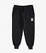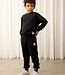 Black sweatpants made from 100 % GOTS certified organic cotton. The sweatpants are designed with a Mini Rodini Panda label on the left leg, ribbing at the waist and cuffs, two pockets as well as an elastic drawstring waist.
