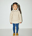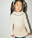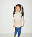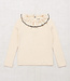 A long-sleeved slim-fit top in soft organic Pima cotton, featuring a gathered ruffle neck with contrast merrowed edge and snap closure at the back neck.