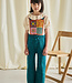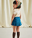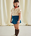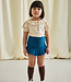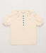 A short-sleeved top in Pima cotton, featuring puff sleeves with soft elasticated cuffs, a pleated collar, and partial snap button front closure. A great style for layering.
