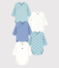 This set includes two printed bodysuits, one blue milleraies and two plain ones.