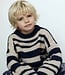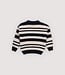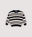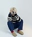 Classic striped sweater pattern in two-tone colors with contrasting embroidery on the chest.